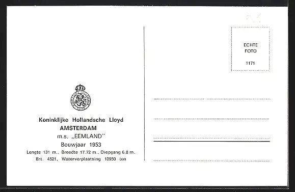 AK Handelsschiff MS Eemland, Koninklijke Hollandsche Lloyd