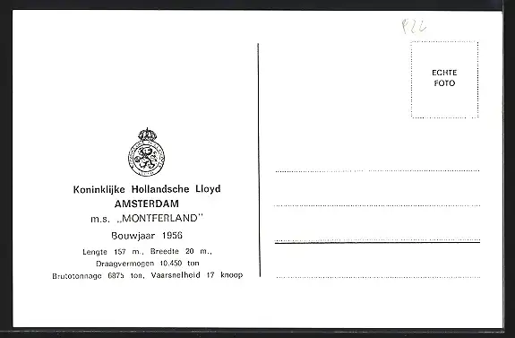 AK Handelsschiff MS Montferland, Koninklijke Hollandsche Lloyd