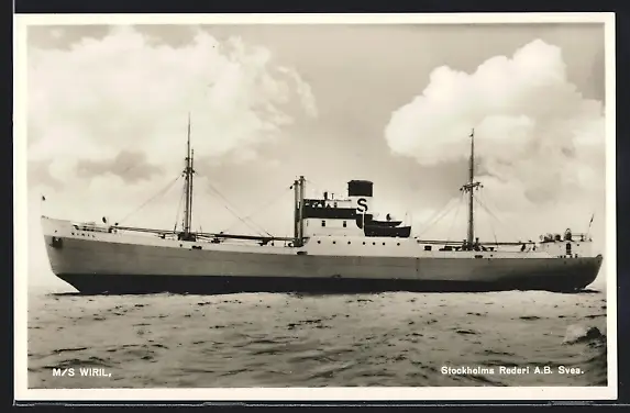 AK Handelsschiff M.S. Wiril auf hoher See, Stockholms Rederi AB Svea