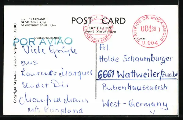 AK Handelsschiff MV Kaapland, Fliegeraufnahme