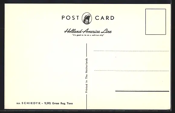 AK Handelsschiff S.S. Schiedyk in voller Fahrt, Holland-America Line