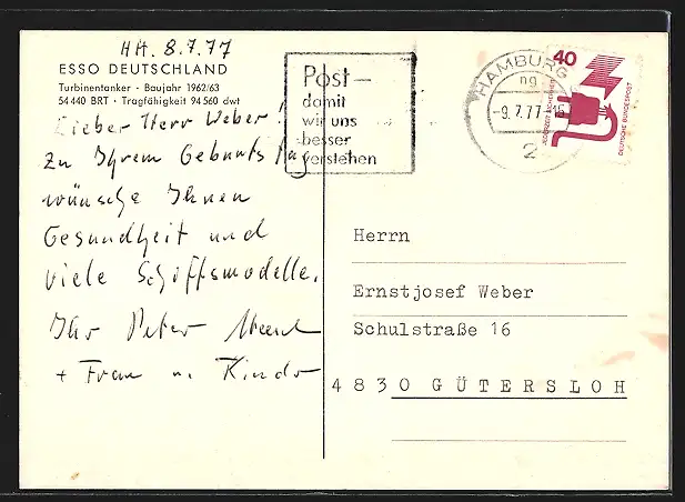 AK Handelsschiff Tanker Esso Deutschland auf See