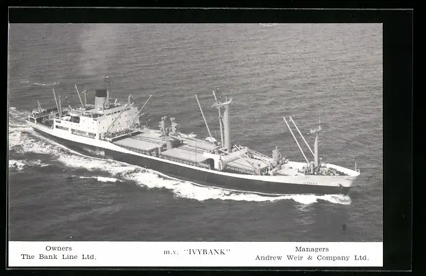 AK Handelsschiff m.v. Ivybank, The Bank Line Ltd. vom Flugzeug aus