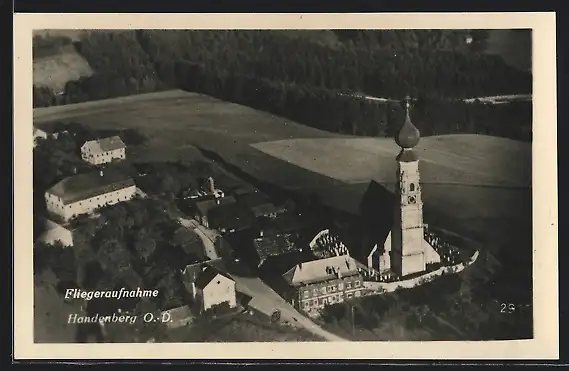AK Handenberg /O.-D., Kirche vom Flugzeug aus
