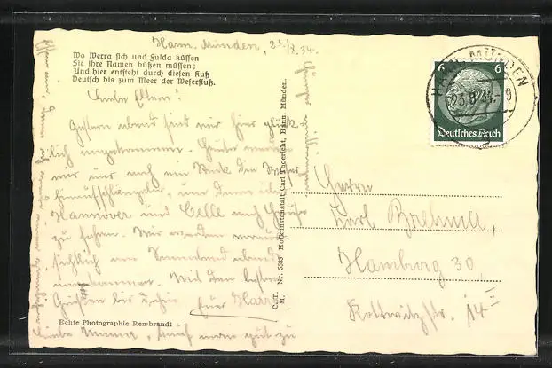 alte Ansichtskarte, gelaufen 1934, guter Zustand