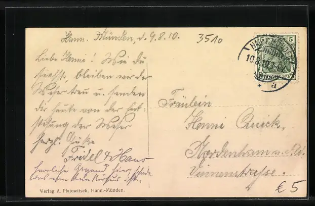alte Ansichtskarte, gelaufen 1910, guter Zustand