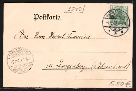 alte Ansichtskarte, gelaufen 1903, guter Zustand
