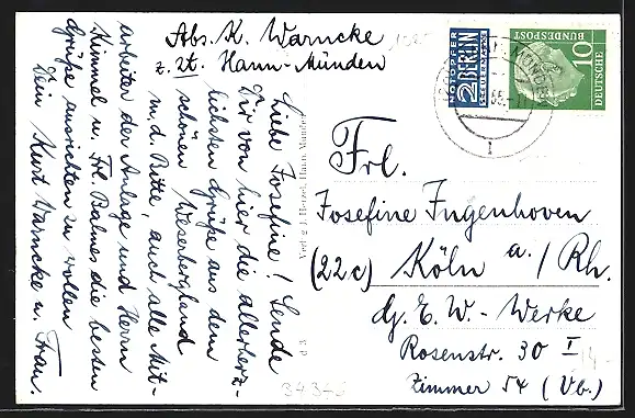 alte Ansichtskarte, gelaufen 1955, guter Zustand