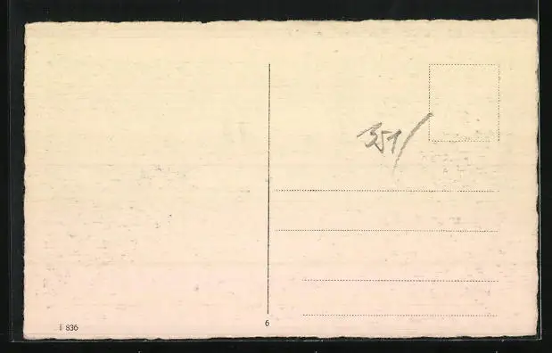 Personenbezogene Daten auf der Rückseite der Karte wurden durch blauen Textmarker unkenntlich gemacht. Die blauen Stellen sind auf die Vorderseite durchgeweicht und wirken sich negativ auf das Postkartenfoto aus
