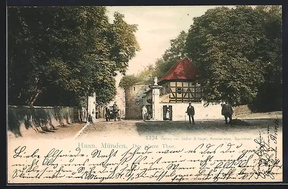 AK Hann. Münden, Oberes Tor mit Strassenpartie