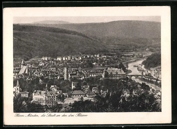 AK Hann. Münden, Ortsansicht aus der Vogelschau