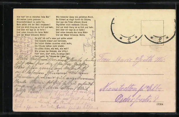 alte Ansichtskarte, gelaufen, Briefmarke entfernt, guter Zustand