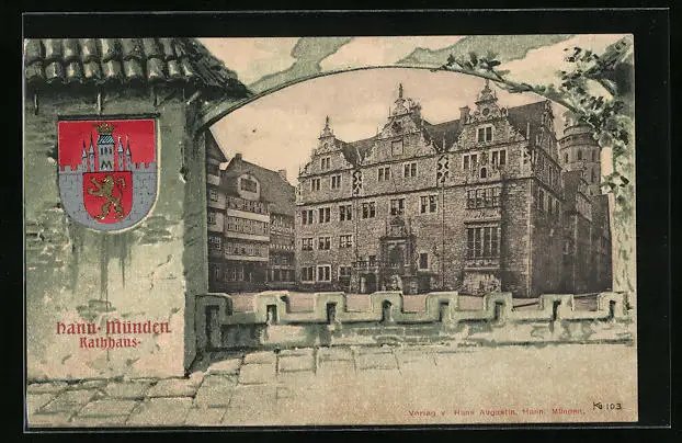 AK Hann. Münden, Rathaus mit Stadtwappen