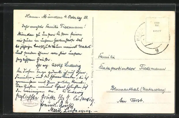 alte Ansichtskarte, gelaufen 1933, Briefmarke entfernt, sonst guter Zustand