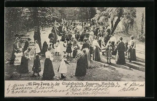 AK Hannover, 12-Uhr-Pause in der Elisabethschule, Maschstrasse 4