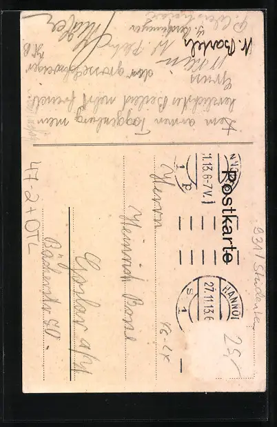 alte Ansichtskarte, gelaufen 1913, Briefmarke entfernt, rückseitig Oberflächenschaden, guter Zustand