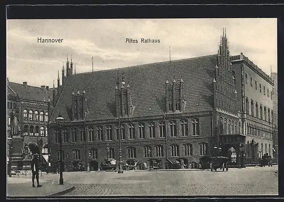 AK Hannover, Altes Rathaus mit Strassenpartie