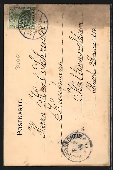 alte Ansichtskarte, gelaufen 1904, guter Zustand