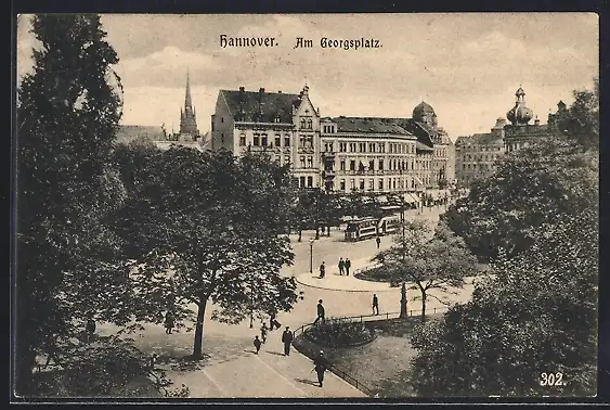AK Hannover, Am Georgsplatz mit Strassenbahn
