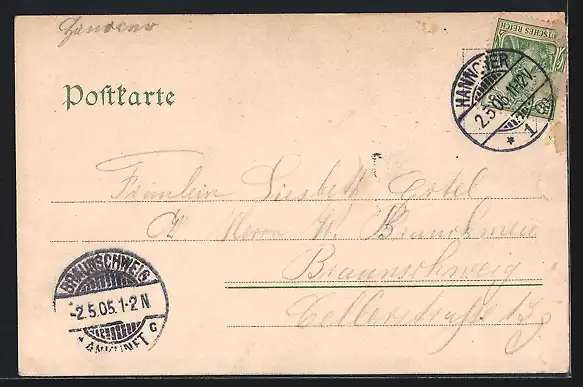 alte Ansichtskarte, gelaufen 1905, Stempelspur, guter Zustand