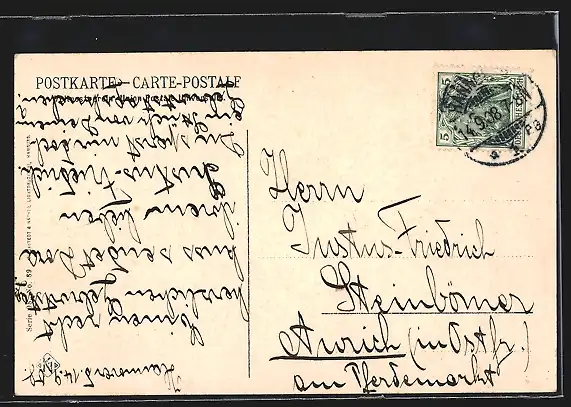 alte Ansichtskarte, gelaufen 1908, guter Zustand