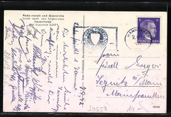 AK Hannover, Badeanstalt und Gaststätte Hasenheide