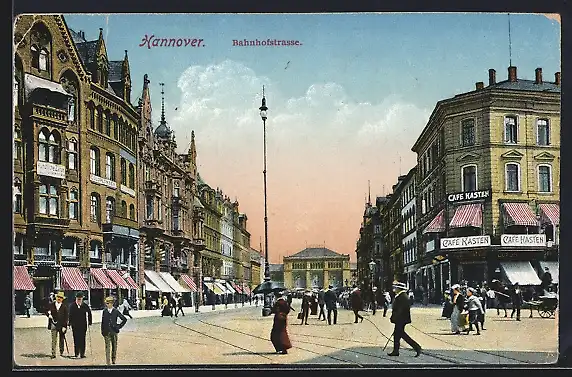 AK Hannover, Bahnhofstrasse mit Cafe Kasten
