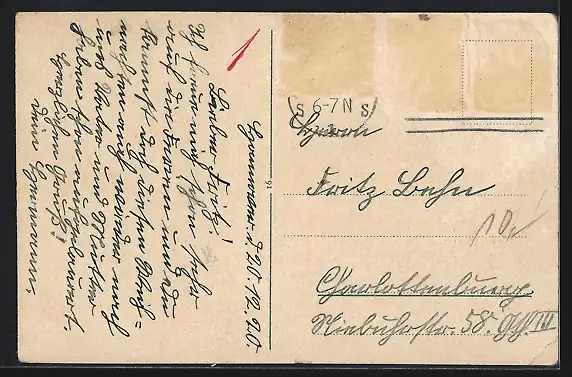 alte Ansichtskarte, gelaufen 1920, Briefmarke entfernt, Eckknicke links u. rechts, Bugspur li. oben, guter Zustand
