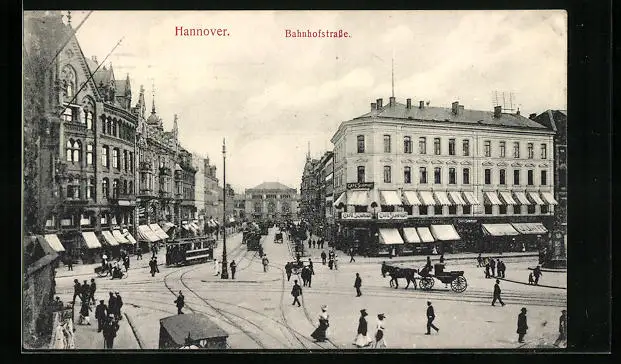 AK Hannover, Bahnhofstrasse mit Strassenbahn