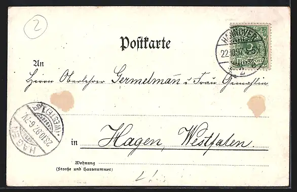 alte Ansichtskarte, gelaufen 1897, guter Zustand