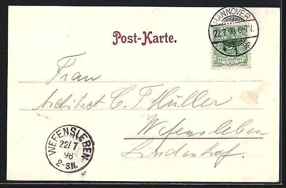 alte Ansichtskarte, gelaufen 1898, Stempelspur, guter Zustand