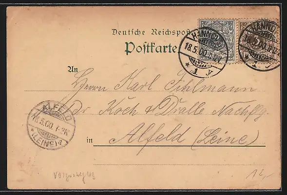 alte Ansichtskarte, gelaufen 1900, Eckknick oben re., guter Zustand
