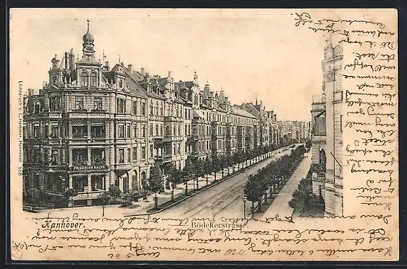 AK Hannover, Bödekerstrasse mit Hotel von Friedrich Balke