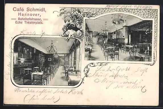 AK Hannover, Cafe Schmidt, Bahnhofstrasse Ecke Theaterplatz