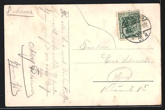 alte Ansichtskarte, gelaufen 1907, Eckknick li. oben, guter Zustand