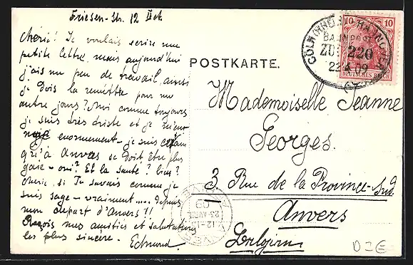 alte Ansichtskarte, gelaufen 1909, Stempelspur, guter Zustand