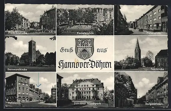 AK Hannover-Döhren, Döhrener Maschpark, Petrikirche, Helenenstrasse