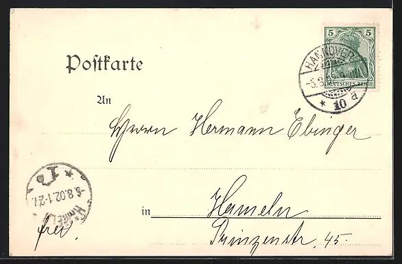 alte Ansichtskarte, gelaufen 1902, guter Zustand