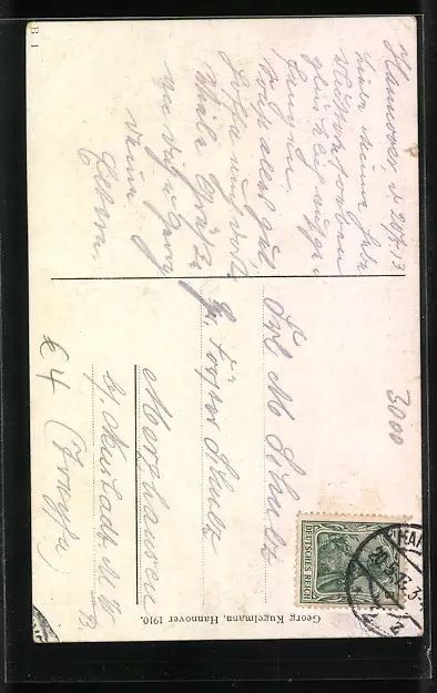 alte Ansichtskarte, gelaufen 1913, Eckknicke li. oben, minimaler Einriss re. oben, guter Zustand
