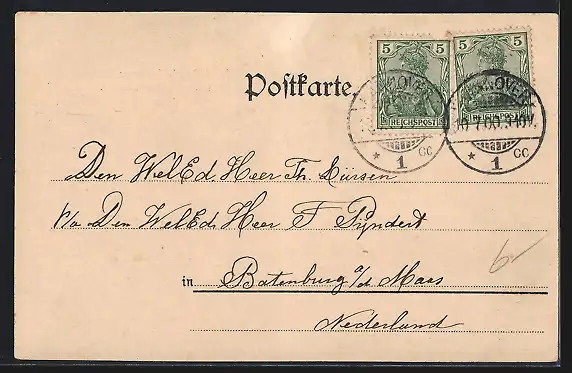 alte Ansichtskarte, gelaufen 1900, guter Zustand