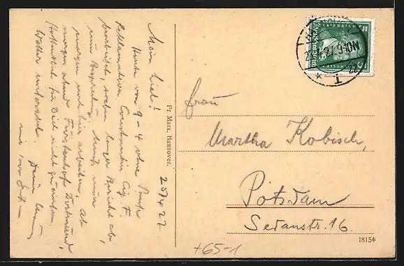alte Ansichtskarte, gelaufen 1927, guter Zustand