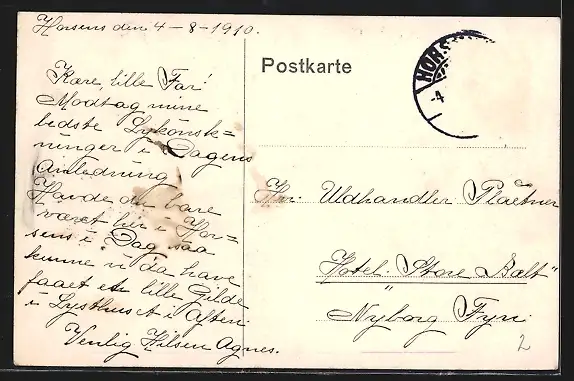gelaufen 1910, Briefmarke entfernt, guter Zustand