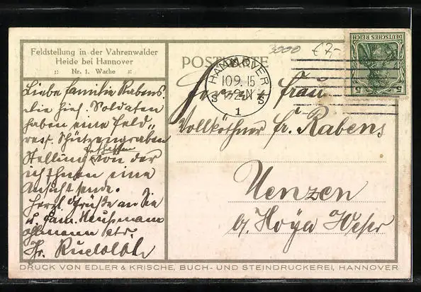 AK Hannover, Feldstellung in der Vahrenwalder Heide