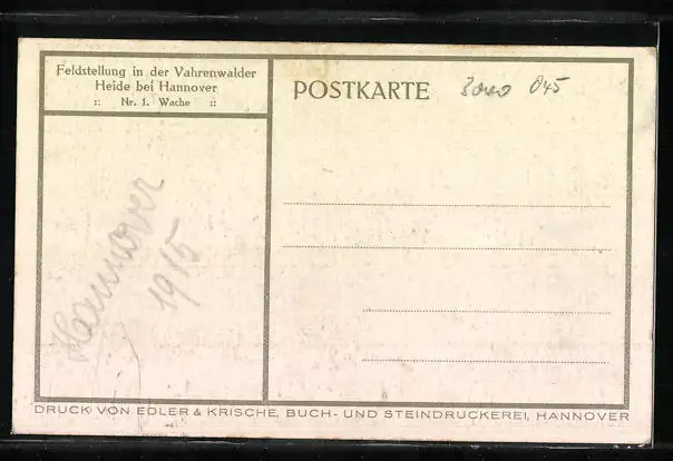 AK Hannover, Feldstellung in der Vahrenwalder Heide, Wache