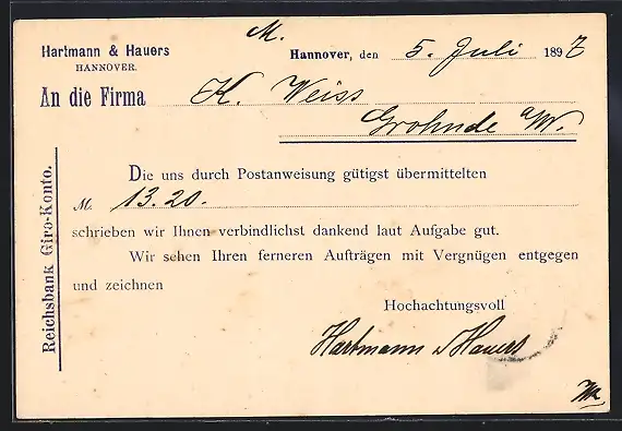 AK Hannover, Firma Hartmann & Hauers