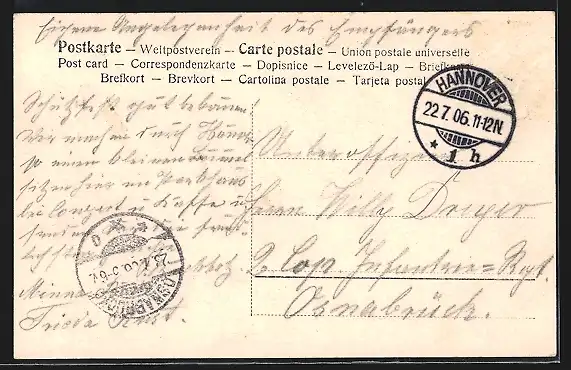 alte Ansichtskarte, gelaufen 1906, guter Zustand