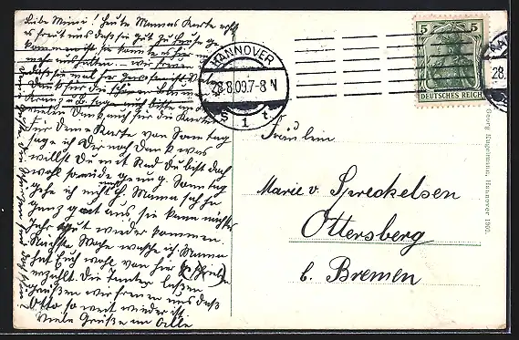 alte Ansichtskarte, gelaufen 1909, Stempelspur, guter Zustand