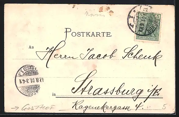 gelaufen 1901, Eckknicke li. oben u. re., guter Zustand