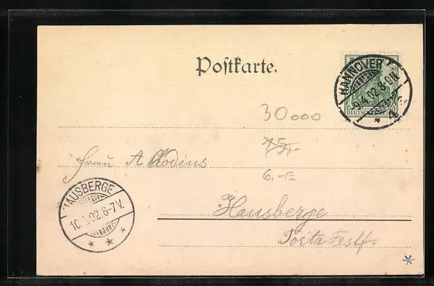 alte Ansichtskarte, gelaufen 1902, guter Zustand
