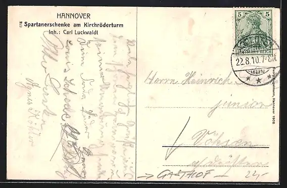 AK Hannover, Gasthof Spartanerschenke am Kirchröderturm von Carl Luckwaldt